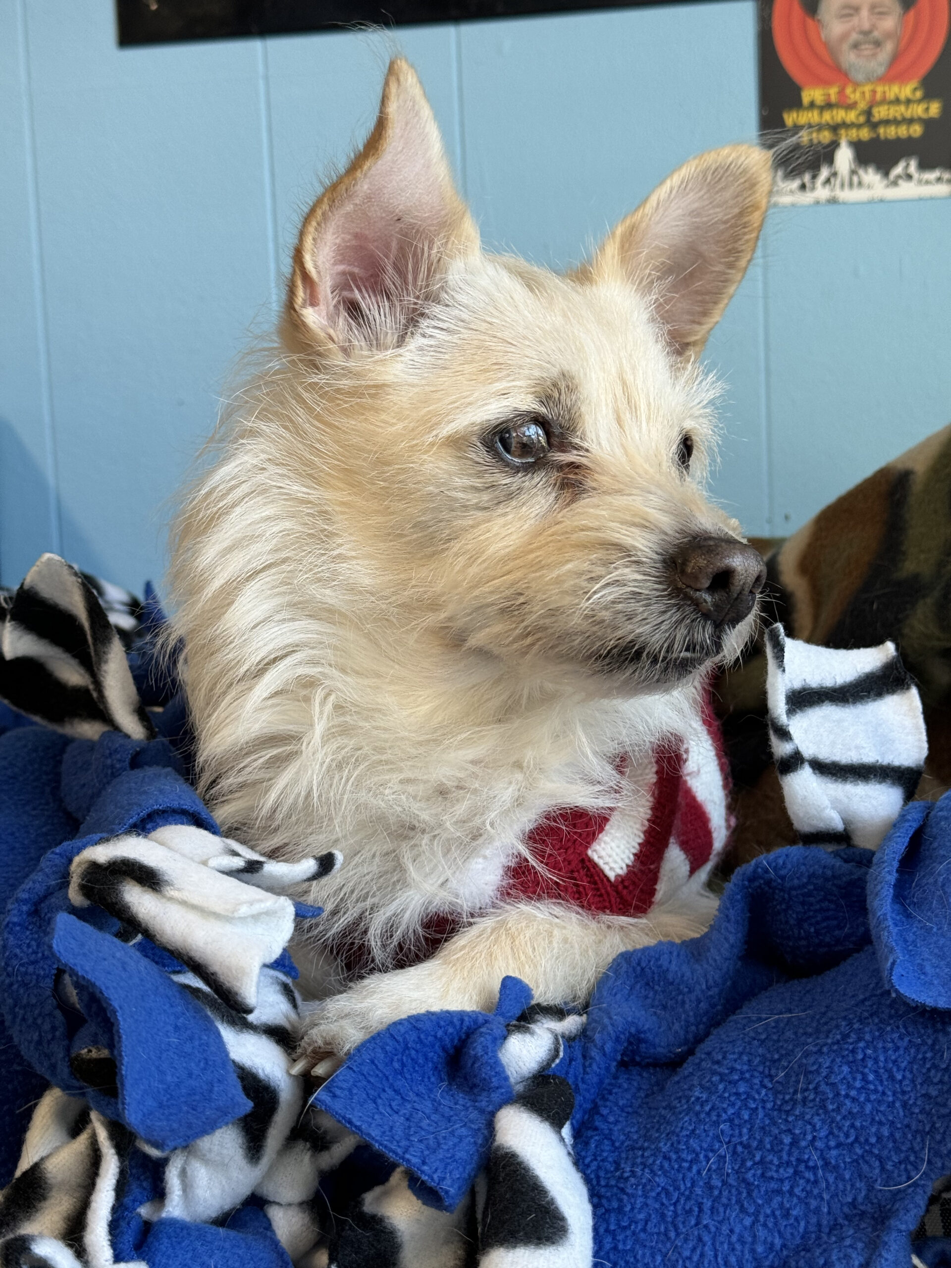 Charlie is a senior puppy, he may be ~9 years old but he has all the spirit of a puppy. He loves lounging next to volunteers and just enjoying life. He can be a little uncomfortable around overly masculine energy– but aren’t we all? He is truly a treasure and will make a great companion to someone with his same vibe.